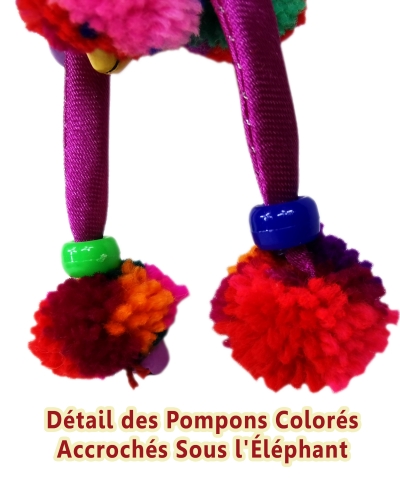 Réf.: 000550Porte-Clés Éléphant avec Pompons et Grelots