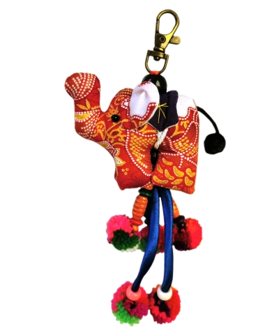 Porte-cles elephant avec pompons et grelots