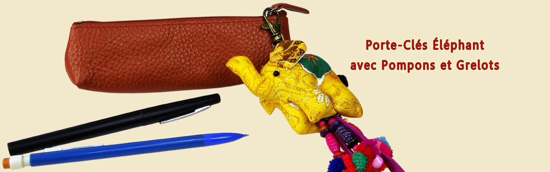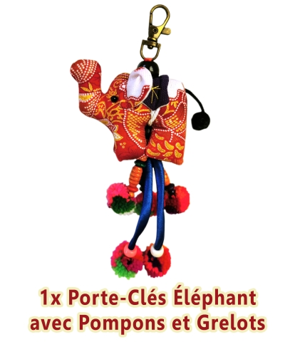 Réf.: 000550Porte-Clés Éléphant avec Pompons et Grelots